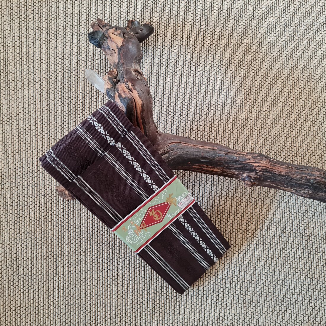 Diese Deluxe Obi-Gürtel aus Seide in der Farbe Braun, ist im Nishijin-Webstil hergestellt und kommt direkt aus Kyoto - dem Herzen traditioneller japanischer Kimono-Kultur. Der Kaku Obi ist ein dünner, traditioneller Gürtel der sowohl mit dem Kimono, als auch in traditionellen Kampfkünsten getragen wird. Häufig findet er verwendung im Iaido, Kendo, Koryu oder auch im Bujinkan.