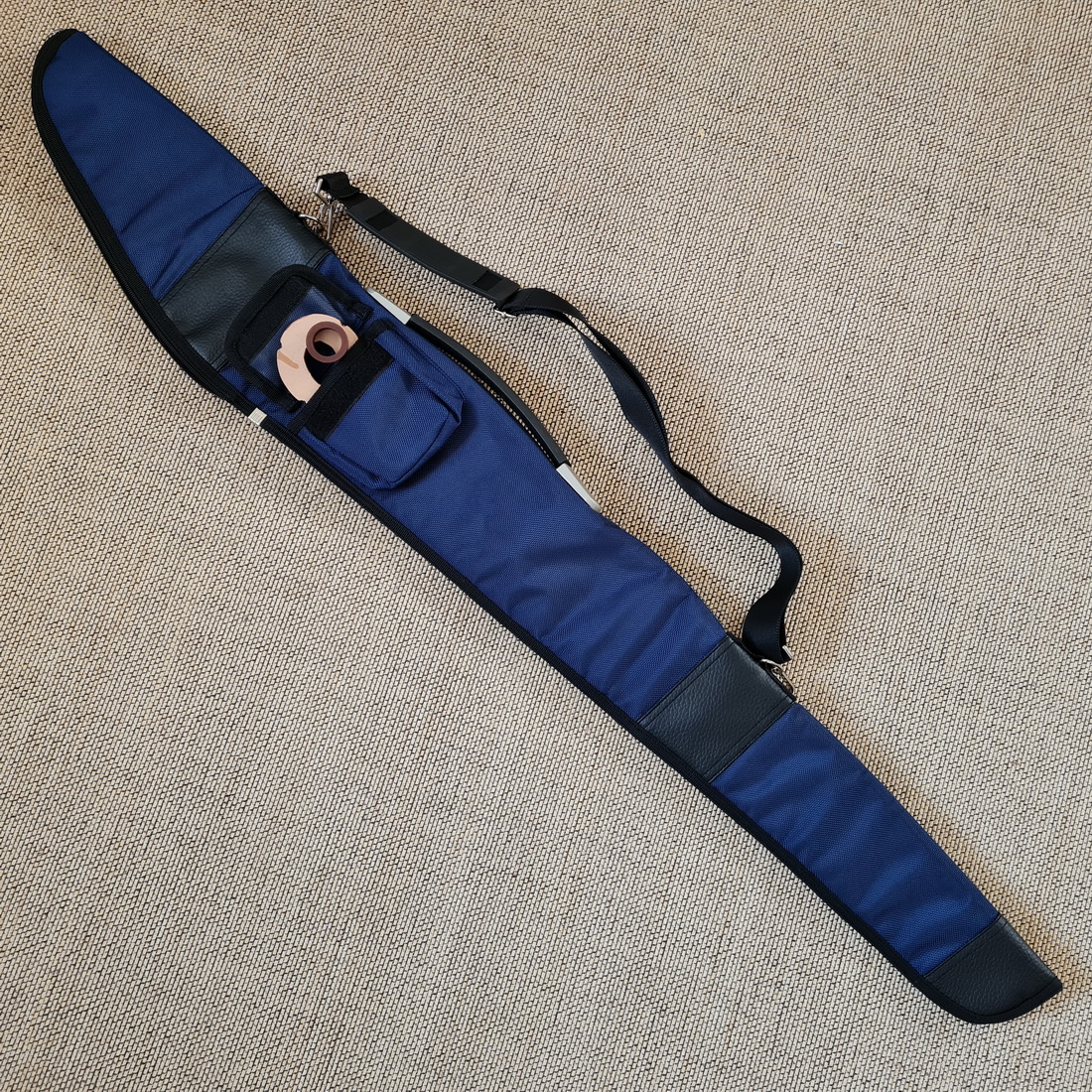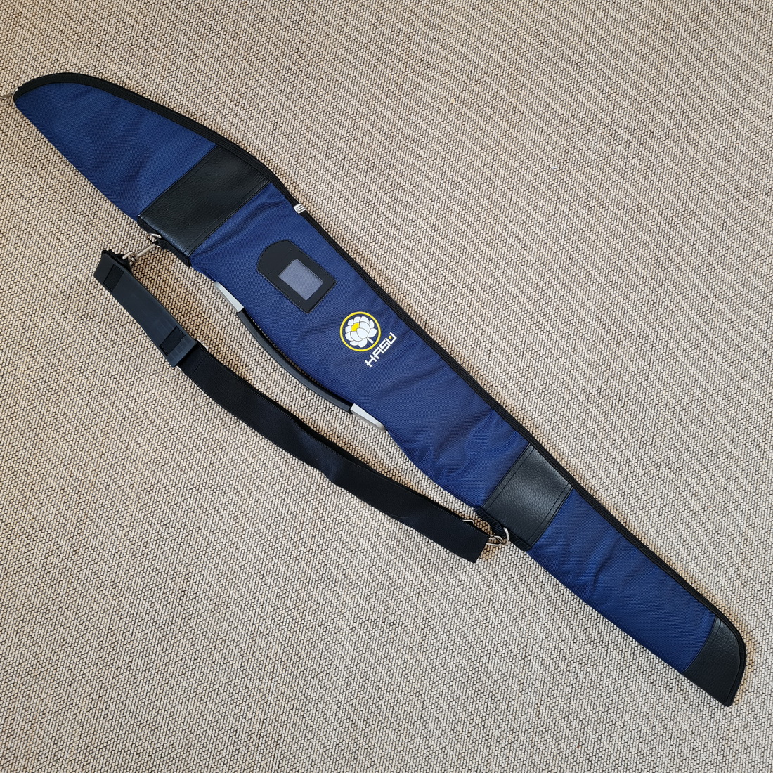 Diese HASU-Schwerttasche in blau besteht aus strapazierfähigem gewebten Nylongewebe und hat ein gepolstertes Innenfutter. In ihr kannst du bequem und sicher Dein Samuraischwert / Katana (bis 2,50 Shaku) oder einen Bokken in Dein Dojo und ins Training transportieren. Die stilvolle Schwerttasche hat einen ergonomischen Handgriff und einen verstellbaren Schultergurt. Durch das Anbringen eines Reisevorhängeschlosses kannst Du Dein Samuraischwert für den Transport sichern und bist damit auf der sicheren Seite was unser deutsches Waffengesetz angeht.
