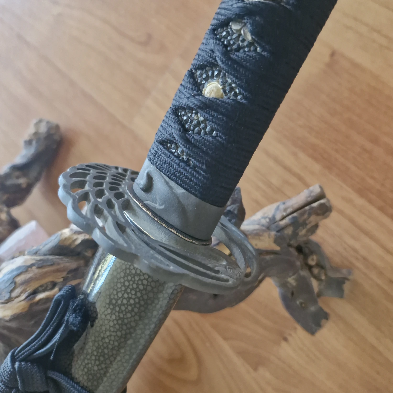 Im Kundenauftrag biete ich diese wunderschöne Tsuru-Katana von Hanwei in antiker Ausführung an. Die Tsuba hat ein leichtes Spiel, das aber bei der Kata und den Übungsformen nicht stört (mich).