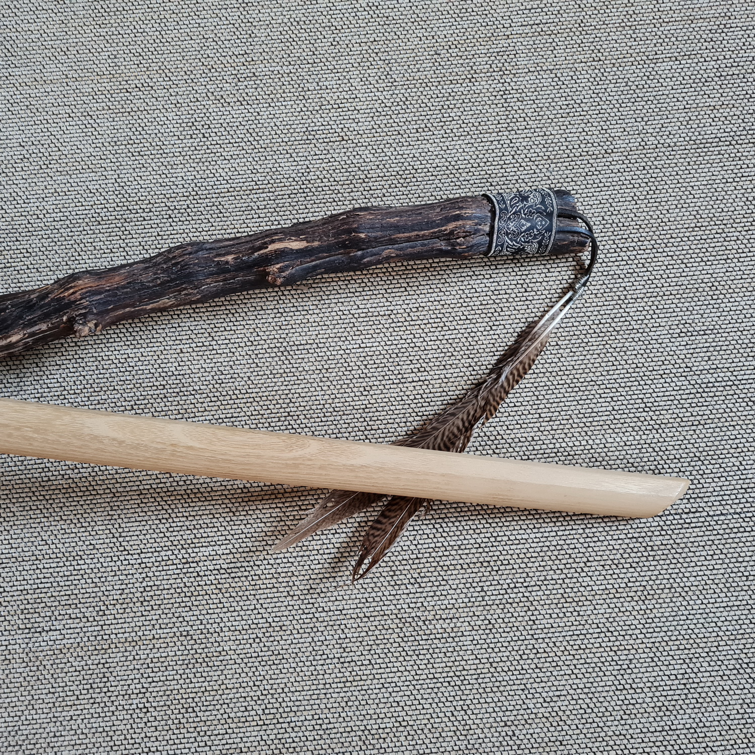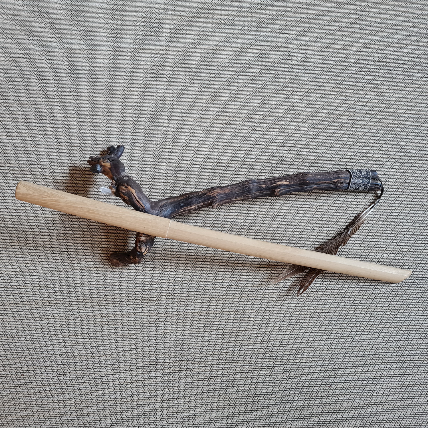 Unser besonders langes Shoto aus Robinie in der Itto-Ryu-Form besticht durch die wunderschöne und vielfältige Maserung des Holzes. Das Shoto hat einen Absatz für eine Tsuba.