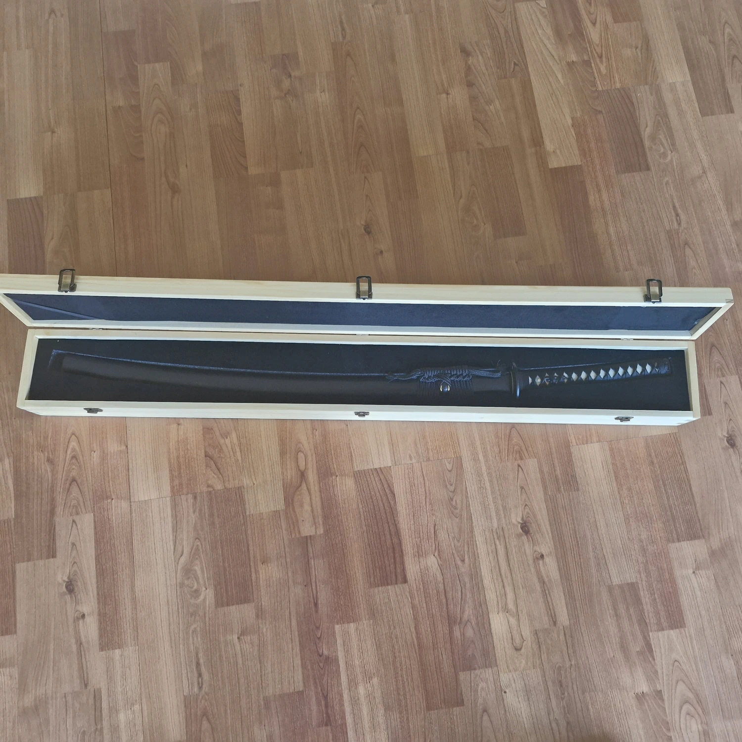 - Handgeschmiedet mit Bohi (Rille) auf beiden Seiten und mit Chu-Kissaki (Spitze). Gehärteter Federstahl aus C65 Material. Die Härte des Rückens (Mune) und der Ha (Schneide) liegt bei ca 55° HRC Rockwell.