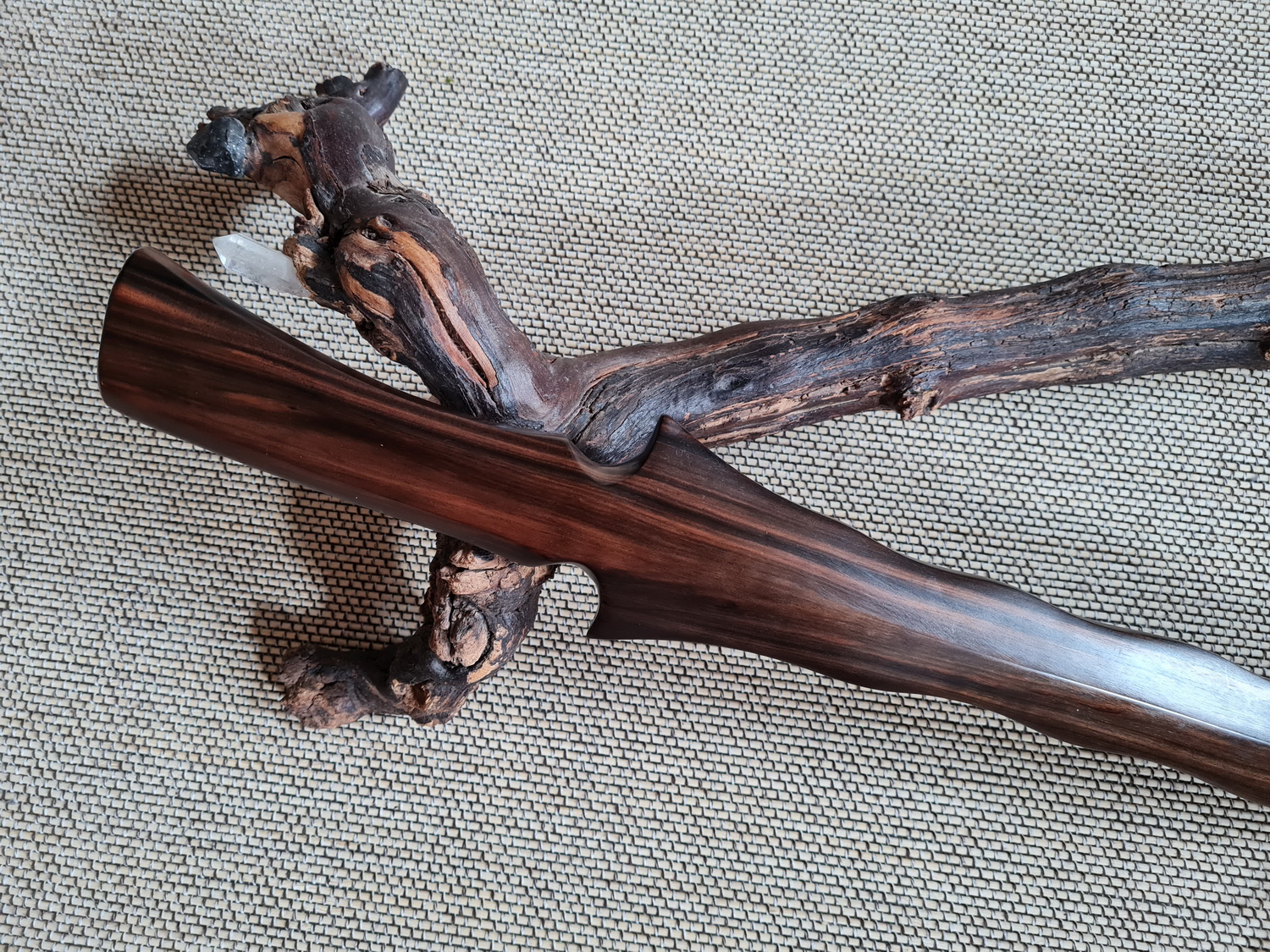 For practicing sword techniques in various martial arts such as Escrima, Arnis & Kali forms, we have made a Kris sword for you from ebony, with the typical corrugated blade in flame shape. The Kirs sword is very well suited for partner training in medium and full contact and lies very well in the hand.