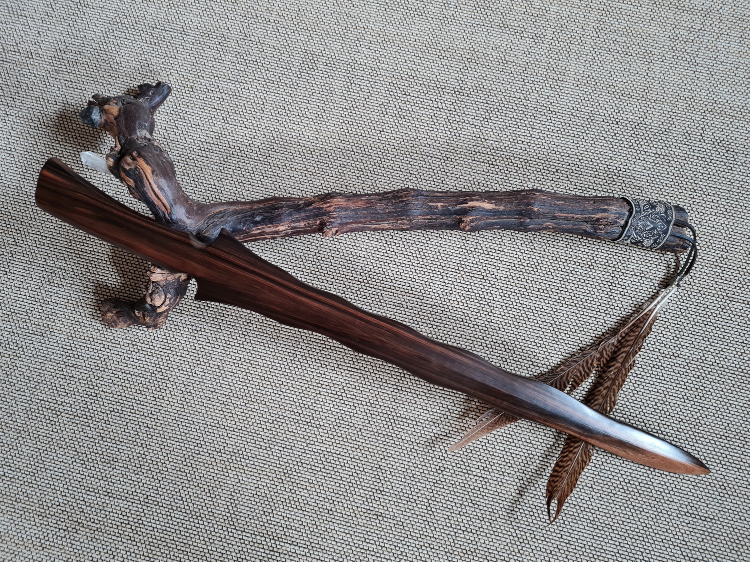 Please note: the kris sword has slight cracks in the outer skin of the wood. It doesn't interfere with the use of the sword.