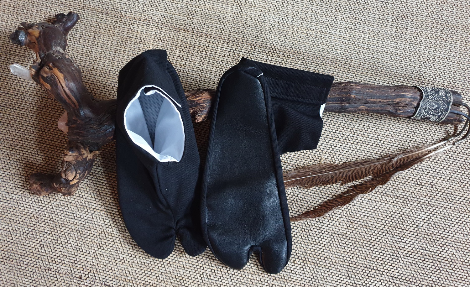 Our traditional tabi socks made of cotton in black /white are very comfortable to wear, are soft and dimensionally stable. The smooth leather sole ensures a high level of stability even under higher loads, such as running, jumping or dancing. The Tabi shoe is closed on the back of the shaft with a Velcro fastener. They support you in your round and gliding movements e.g. in Tai-Chi, Aikido, meditation, Sufi dance, tea ceremony and in your martial arts.