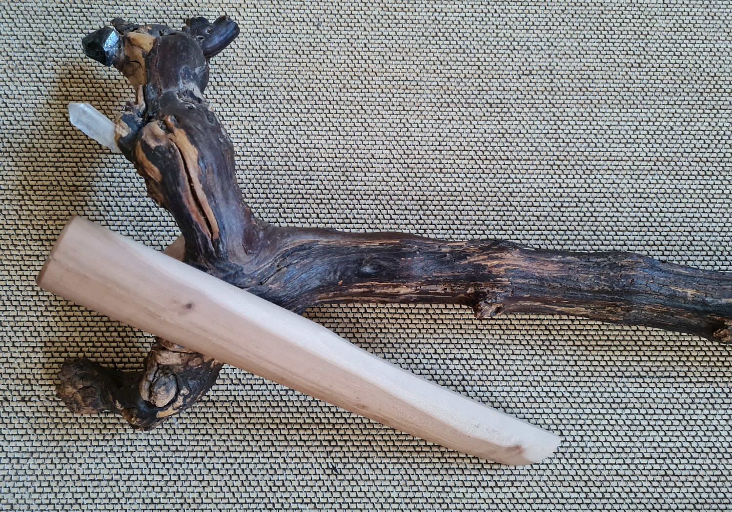 We made this Tanto out of cornel cherry from a small stock of cornel cherry. The Cornelian cherry is considered to be the hardest wood that we can find in Europe. The cornel is used to make tool sticks, gears and wooden hammers.